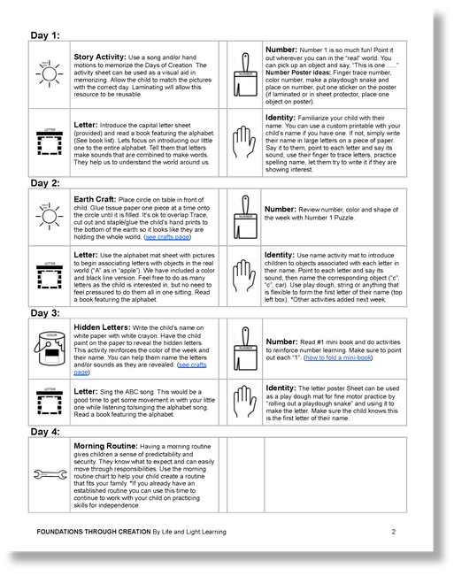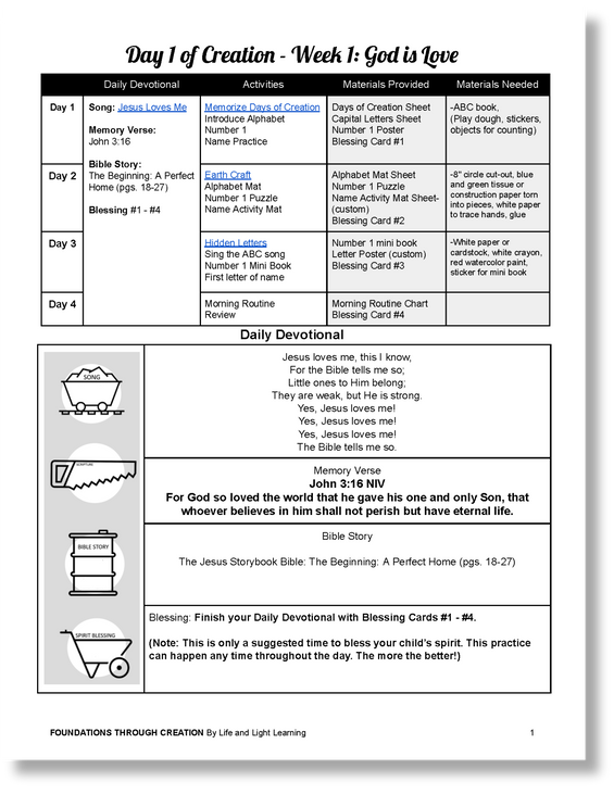 Journey through the 7 days of creation found in the Bible. Each month you have the opportunity to focus on one day of creation and its corresponding themes. Each week there are 11 tools your little one can add to their tool belt. Here, we are intentional about raising up builders....children who know who they are and whose they are.